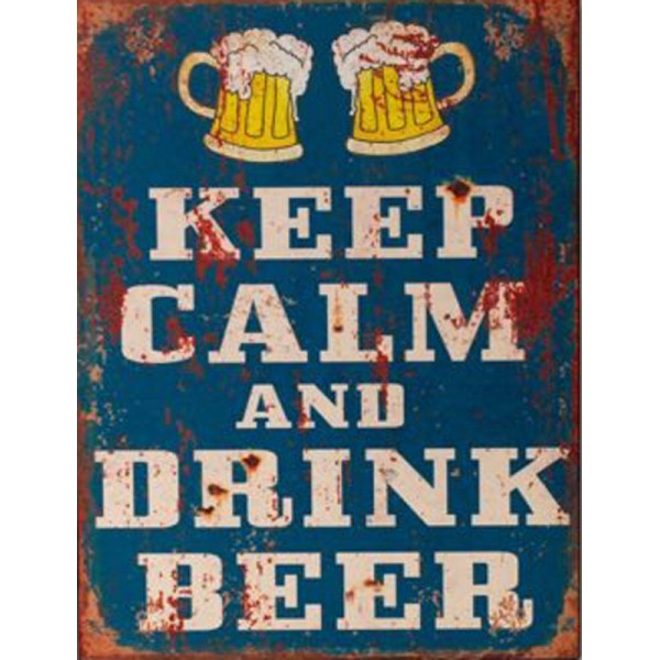 Plaque métal : Keep Calm & Drink a Beer, H 33 cm