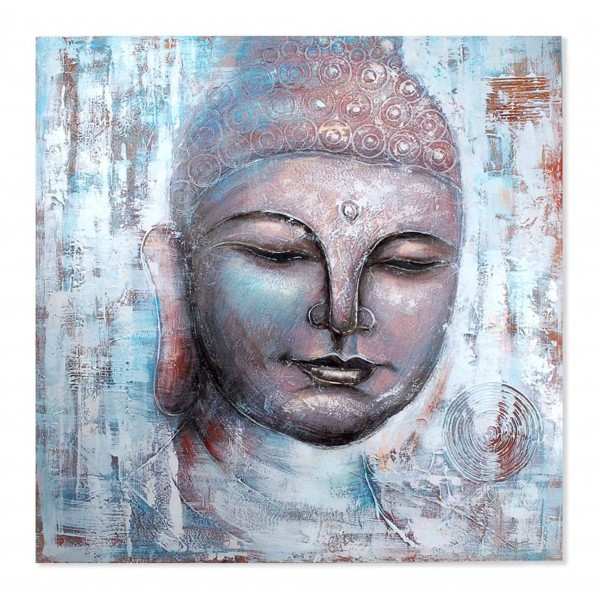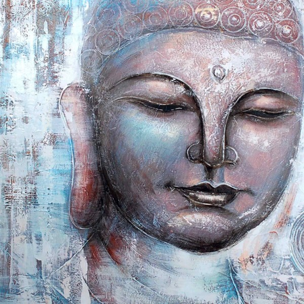 Grand Tableau Bouddha moderne : Shakubuku 2, Bouddha Bleu Mystique, H 100 cm