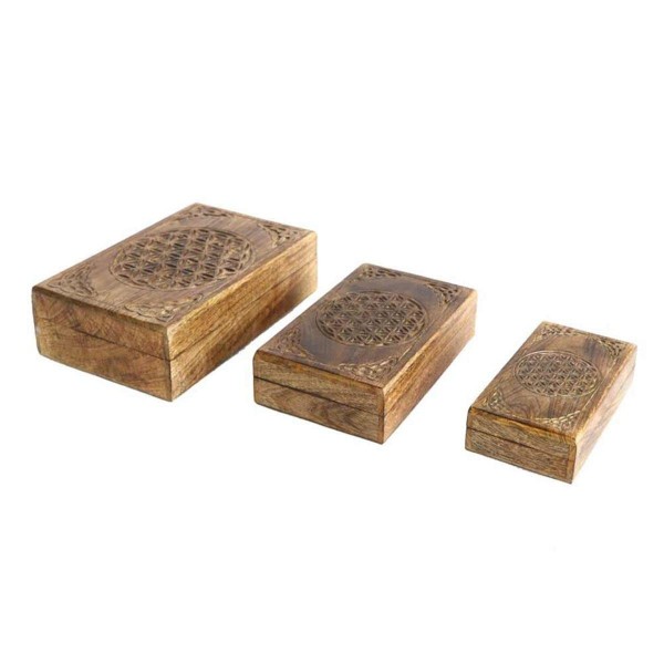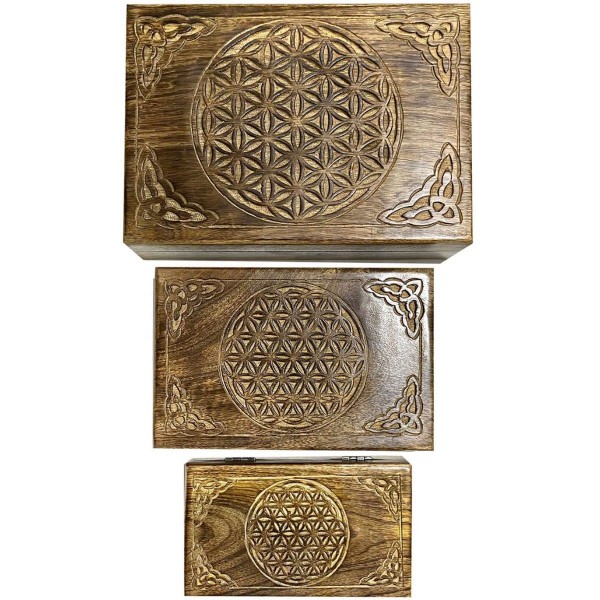 ORIGEN Set de Trois Boîtes Rectangulaires en bois: Modèle Fleur de VIe, L 26 cm (Grande)