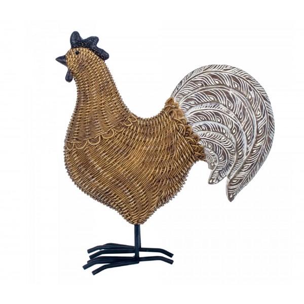Figurine Coq résine et Aspect rotin tressé, Collection ORGANIK, H 27 cm