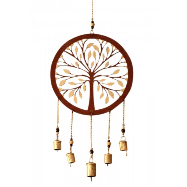 Déco intérieur Extérieur : Grand Mobile Arbre de Vie, Cloches en Laiton, H 57 cm