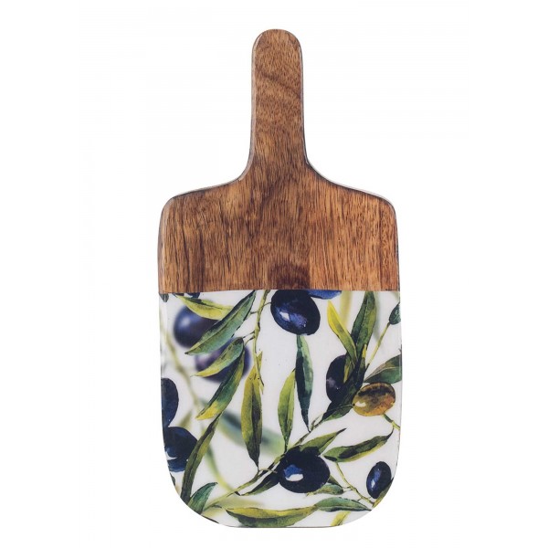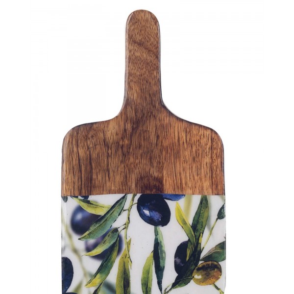 Planche de service, Bois de Manguier et Thème Olives. L 30 cm.
