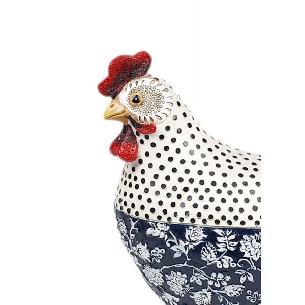 Poule en résine, Collection Deft, Modèle Blanc & Bleu, H 17 cm