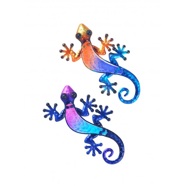 happyDko Le Gecko Métal mural Violet, Collection PENDJAB, Hauteur 21 cm
