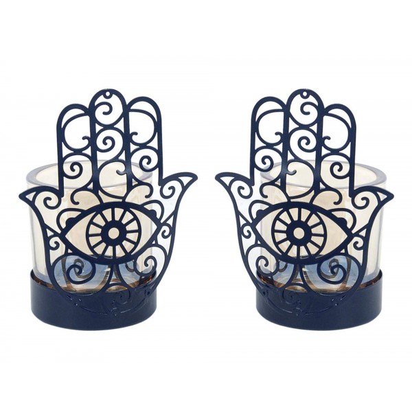 Set 2 Bougeoirs, Mod Main de Fatima, Métal et Verre, H 14 cm