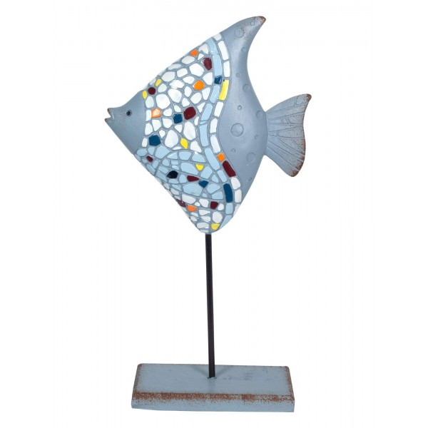 Poisson Exotique sur Socle, Effet Mosaïques, H 37 cm