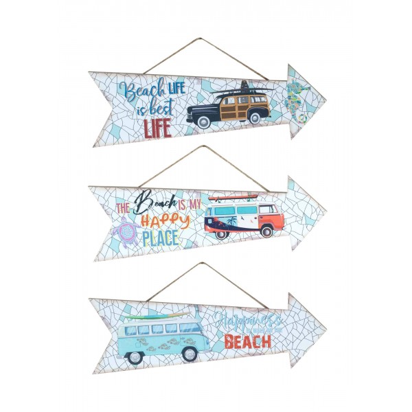 G&S Set 3 Fléches en Bois, thème Plage, Véhicules et Surf, L 30 cm