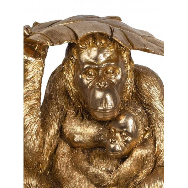 Figurine Animaux en Résine, Orang-Outang et Bébé Doré, H 49 cm