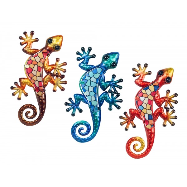 G&S Gecko Mural métal Modèle Murano, Bleu, H 21 cm