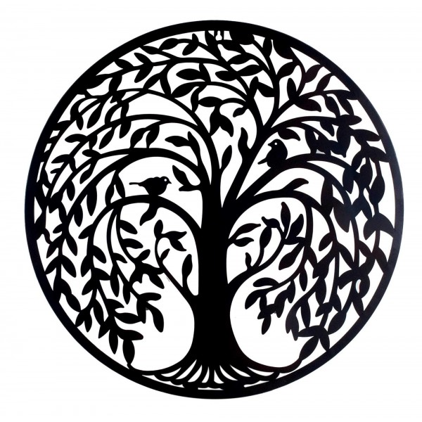 SGRIMALT Déco murale métal: Arbre de vie et Oiseaux, Noir, Diamètre H 60 cm