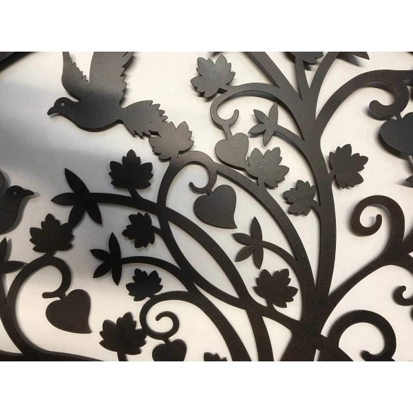 SGRIMALT Déco murale Arbre de Vie Stylisé et Cercle, Feuillage oiseaux et Coeurs, Diam 60 cm