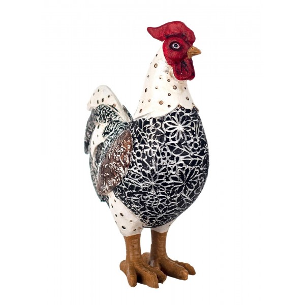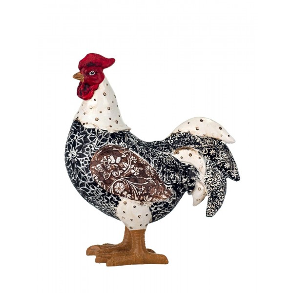 SGRIMALT Figurine Coq, Modèle Noir et Fleuri en Résine, Collection Drawing Art, H 20 cm