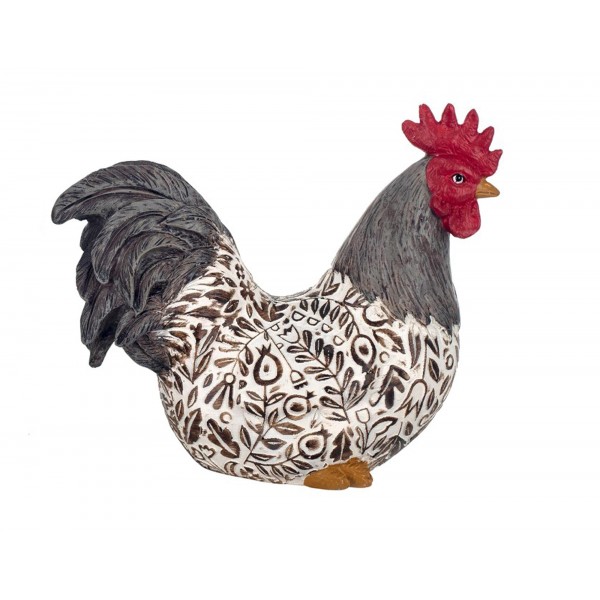 Coq Assis, Modèle Marron et Fleuri en Résine, Collection Drawing Art, H 22 cm