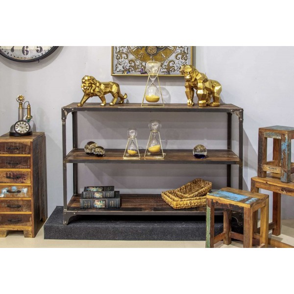 Grande Console et Etagères Métal et Bois Exotique, Collection Sinaloan, Aspect Vieilli et décapé, L 121 cm