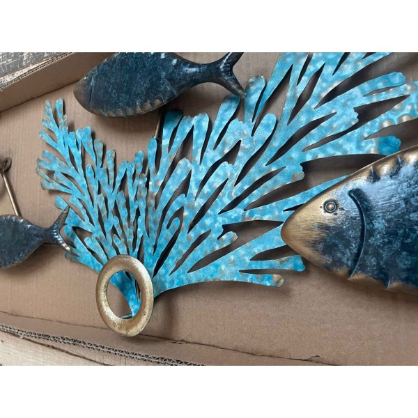 SGRIMALT Décoration Murale : Poissons bleus et Récif coralien stylisé, Longueur 75 cm