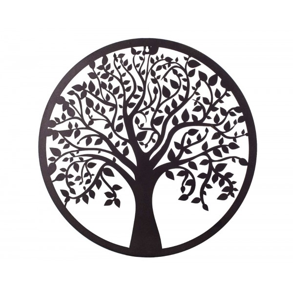 Déco Murale Arbre de Vie en métal, Collection Renaissance, Noir, Diamètre 50 cm