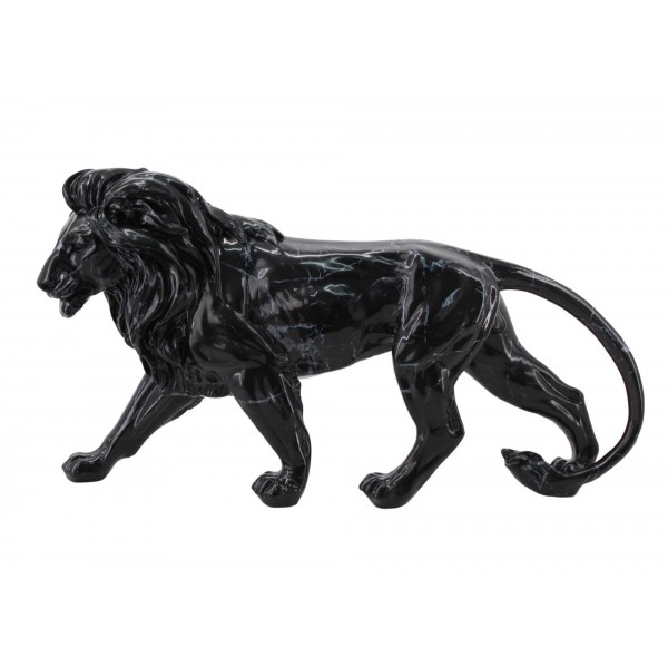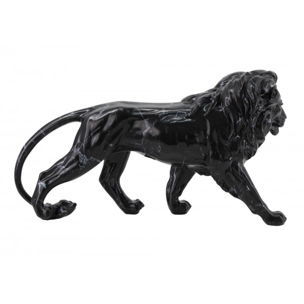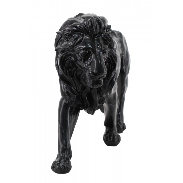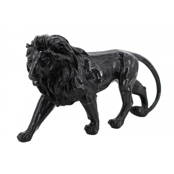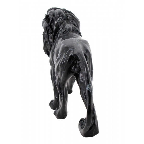 SIGNES GRIMALT Sculpture Résine : Grand Lion Noir, Design Marbré, Longuer 42 cm