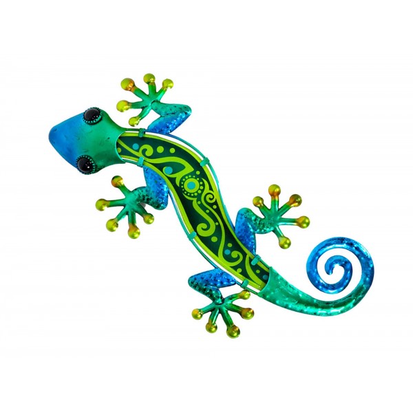 Salamandre et Gecko Mural Vert, Métal et Verre, Modèle JUNGLE GREEN, H 37,5 cm