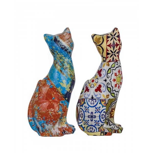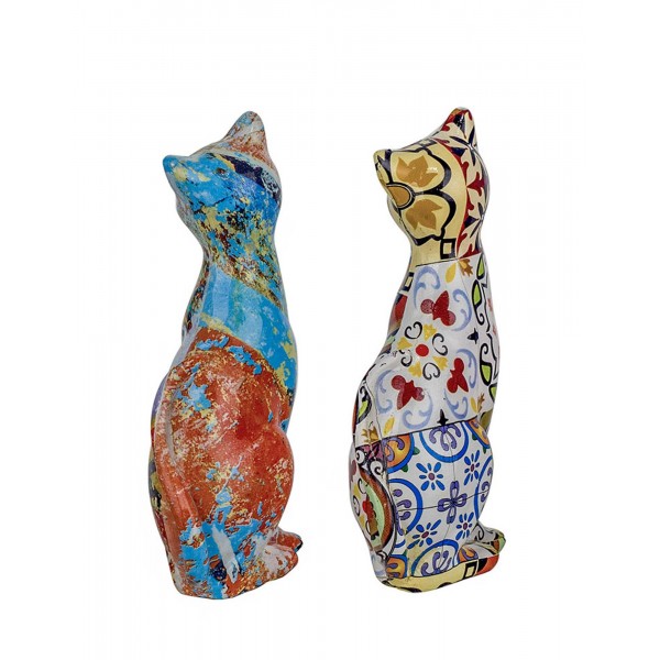 SIGNES GRIMALT Set 2 Figurines Chat Design Multicolore, Motif rétro et Floral, Hauteur 12,5 cm