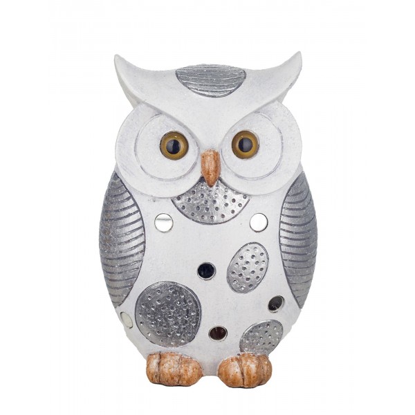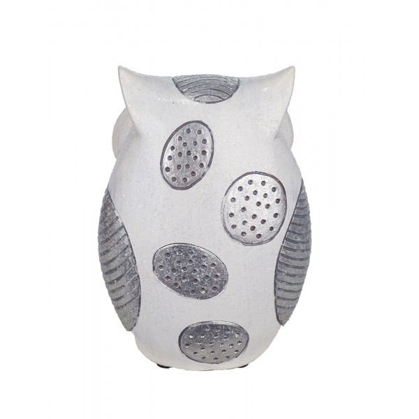 ORIGEN Figurine Chouette Debout, Modèle Felicity, Blanc et Argent, H 19 cm