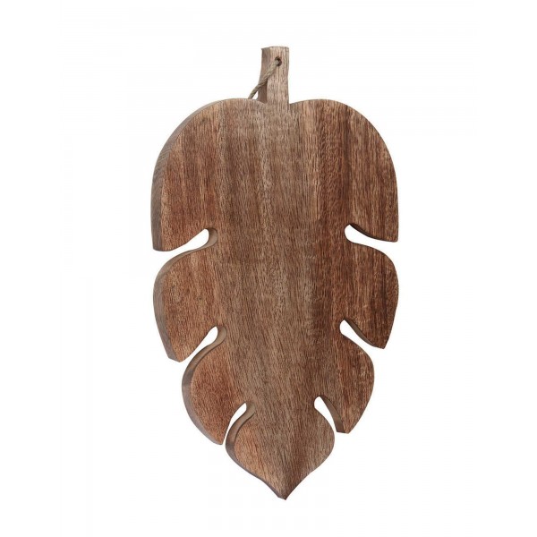 Planche à découper en Bois exotique veiné, Silhouette Feuille, Longueur 35 cm