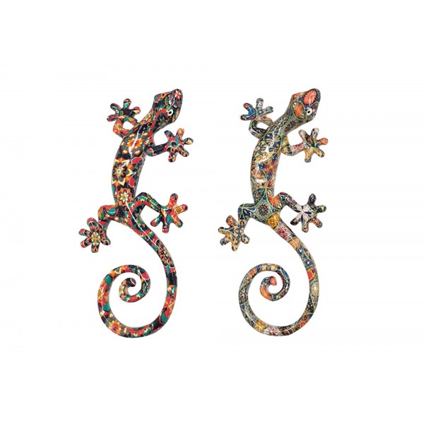 SIGNES GRIMALT Set 2 Geckos Muraux Multicolores, Série Kolor 7, Hauteur 17 cm
