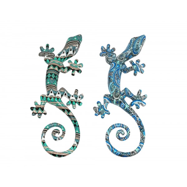 SIGNES GRIMALT Set 2 Geckos Muraux Multicolores, Série Kolor, Hauteur 21 cm