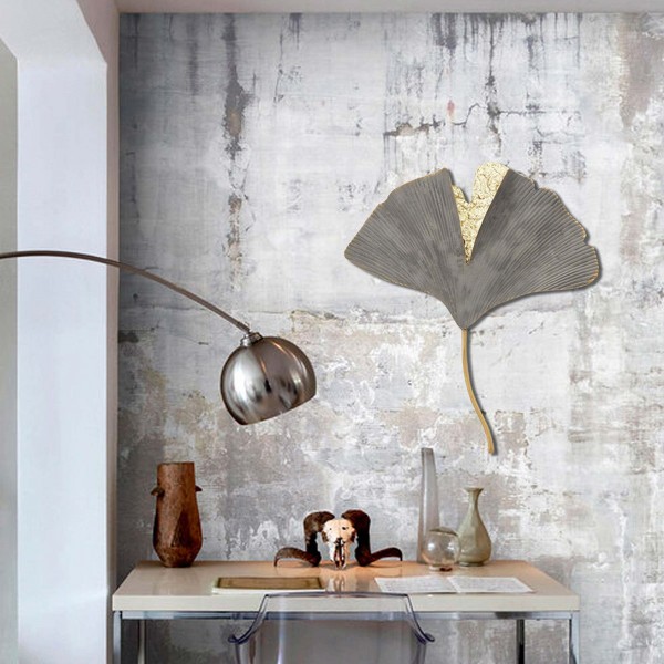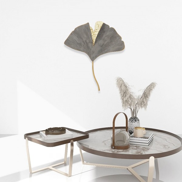 ORIGEN Décoration Métal : Feuilles de Gingko Biloba XL, Gris et Doré, H 41 cm