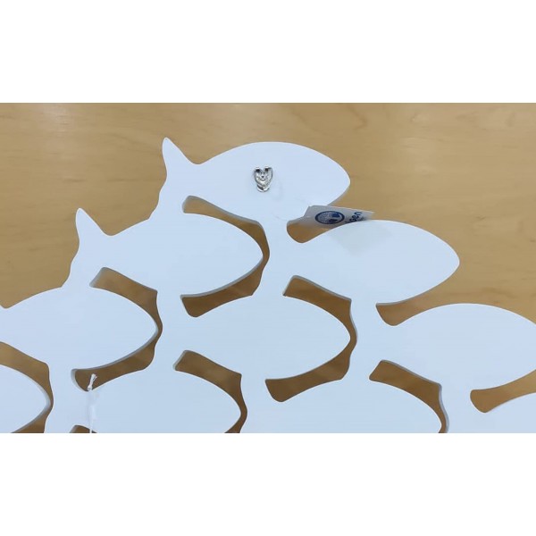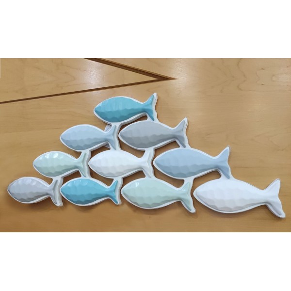ORIGEN Déco Murale : Banc de poissons en bois et tons pastels, Longueur 64 cm