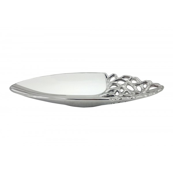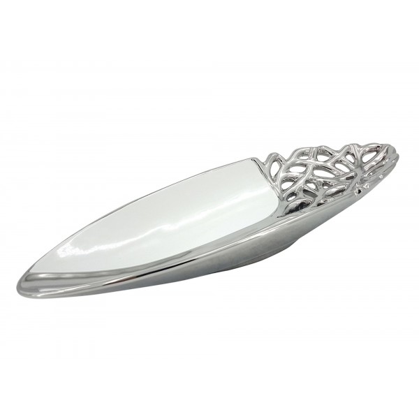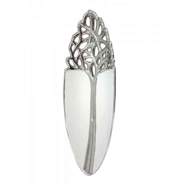 Plateau Design Arbre de Vie, Modèle Corbeille Blanc et Argent, Longueur 36 cm
