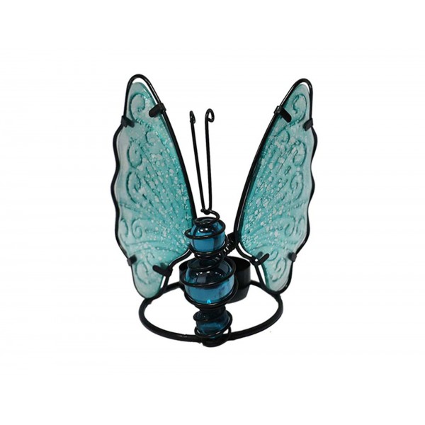 Photophore Papillon Bleu Turquoise, Métal et Verre, Modèle AQUARELIS, Hauteur 12 cm