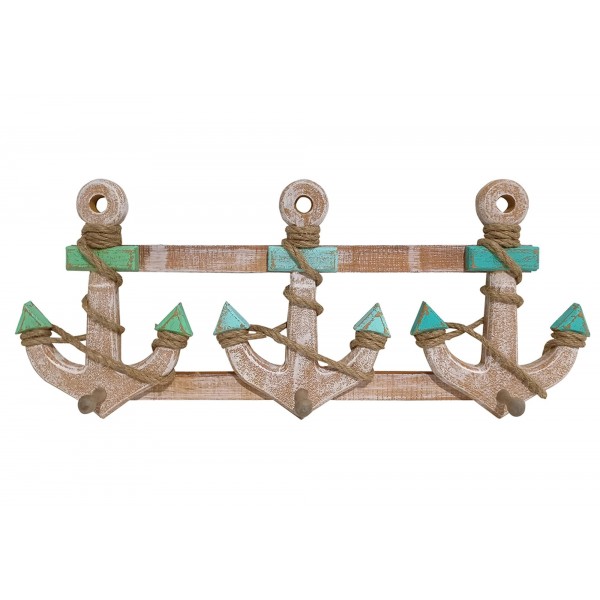 SIGNES GRIMALT Patères-Portemanteaux Trois ancres en bois, Bleu et Marron, Longueur 57 cm
