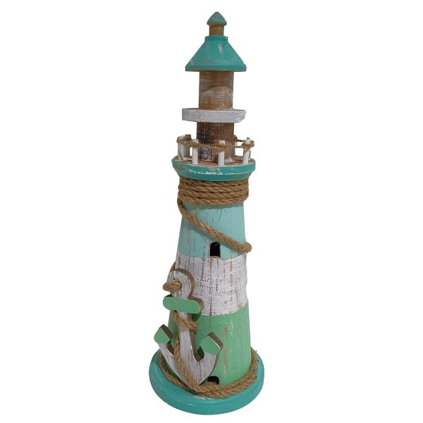SIGNES GRIMALT Figurine Phare décoratif en Bois, Cordage et Ancre, Thème Bord de mer, Vert et Bleu, h 41 cm