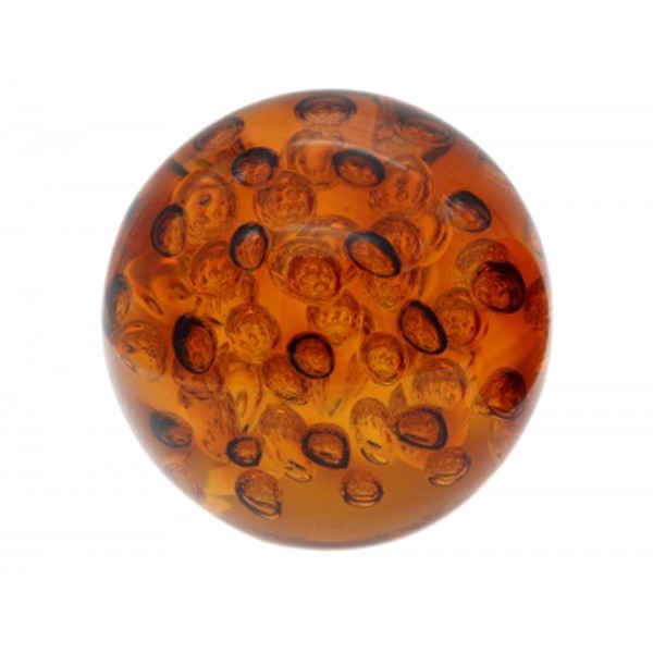 Sulfure en Verre et Presse Papier, Collection Aquaviva, Ambre et Feu, Diamètre 10 cm
