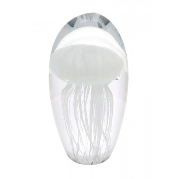 Presse Papier Décoratif et Sculpture Verre XL, Méduse Ondulante Blanche, Hauteur 16 cm