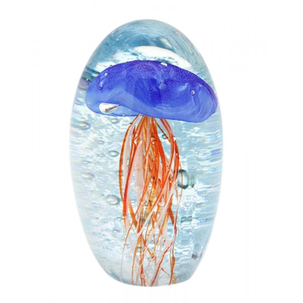 Presse Papier Décoratif et Sculpture Verre, Méduse Ondulante, Bleu et Orange, Hauteur 9,5 cm