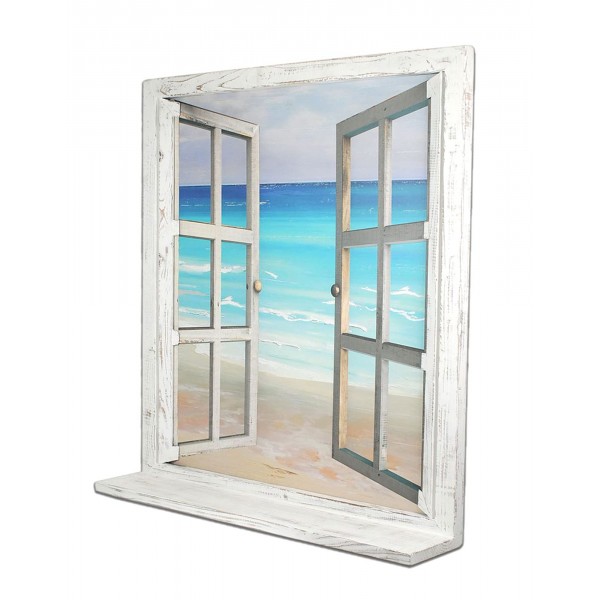 happyDko Tableau Peinture Marine : Fenêtre en trompe l'oeil, Vue mer, H 85 cm
