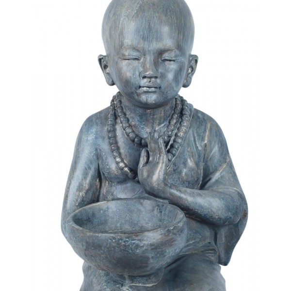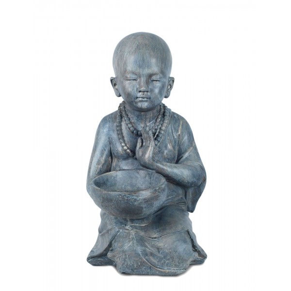 G&S Figurine Zen Intérieur Résine : Moine & Coupelle, H 34 cm