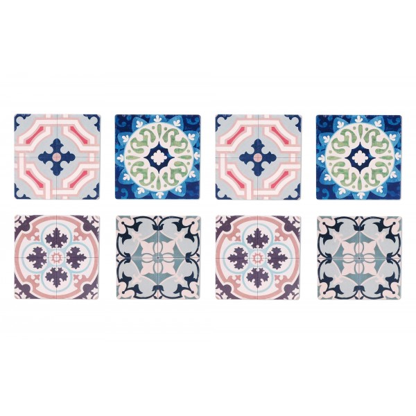Set 8 sous-bocks Rétro, Motifs Carreaux de Ciment 2, H 11 cm