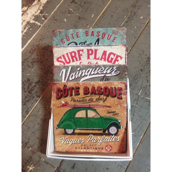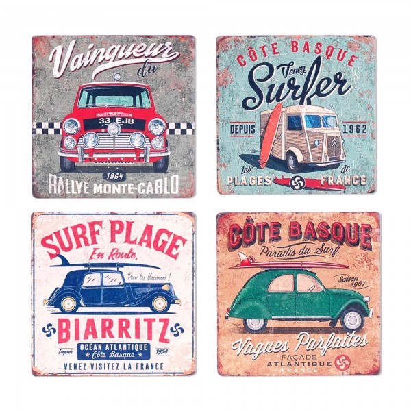 Set 4 sous-bocks Rétro, Motifs Voitures Anciennes, H 11 cm