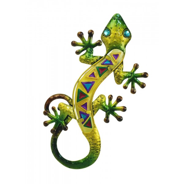 G&S Gecko Mural au Yeux Bleus : Coll Tribal Jaune, H 32 cm