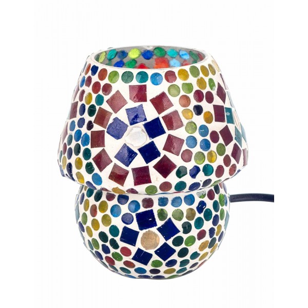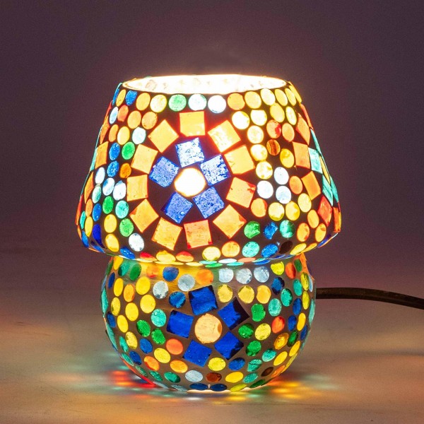 SIGNES GRIMALT Mini lampe ethnique d'inspiration orientale, Verre et Céramique colorée, Hauteur 13 cm