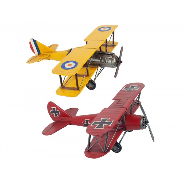 G&S Avion Rétro XL en Laiton, Modèle Biplan Rouge, Longueur 45 cm