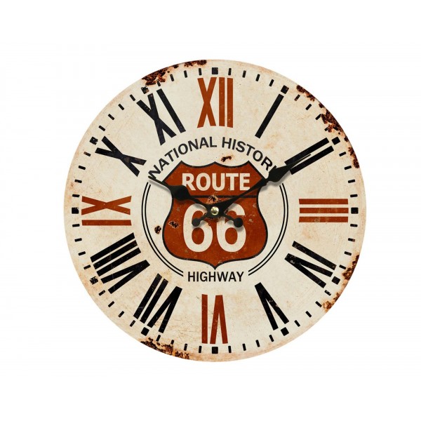 SGRIMALT Horloge Bois MDF Vintage : Route 66, Rouge et Ecru, Chiffres Romains, Diam 34 cm