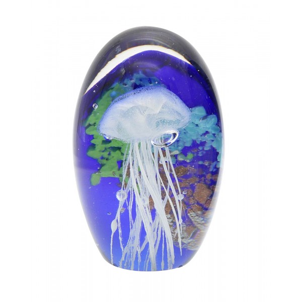 ORIGEN Presse Papier Sulfure en Verre, Méduse Blanc sur océan et Coraux Multicolores, H 11 cm