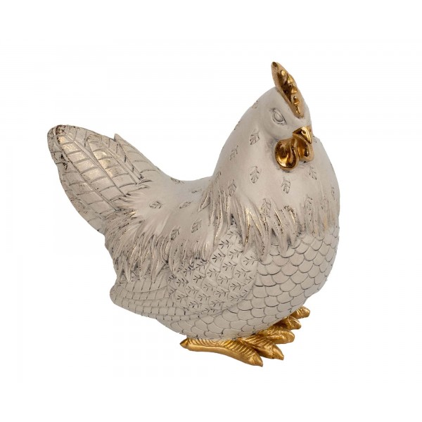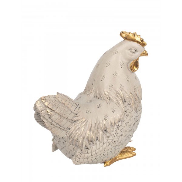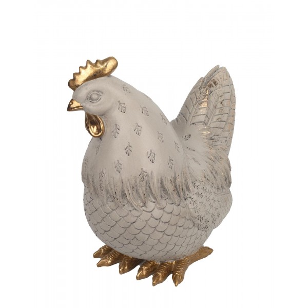 ORIGEN Elégante Poule stylisée en résine, Modèle Ecru et Doré, Collections contemporaines, H 21 cm