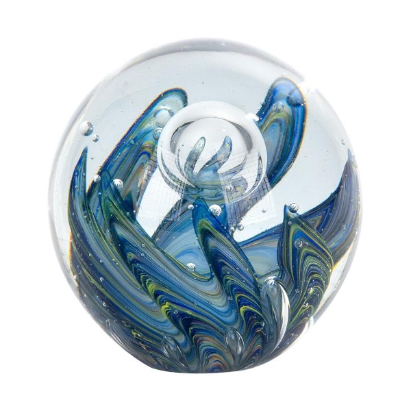Presse Papier Décoratif et Sulfure Verre, Sphère Océane, Aquaviva, Bleu et Gris, Diamètre 10 cm