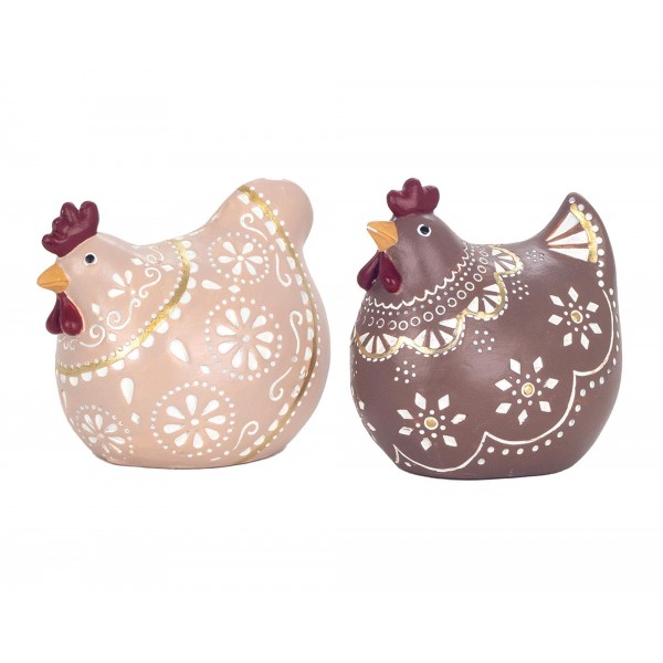 SIGNES GRIMALT Set Poule et Coq en résine, Design Rond et ludique, Collection Paulette, 10 x 10 x 7 cm