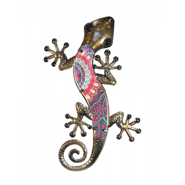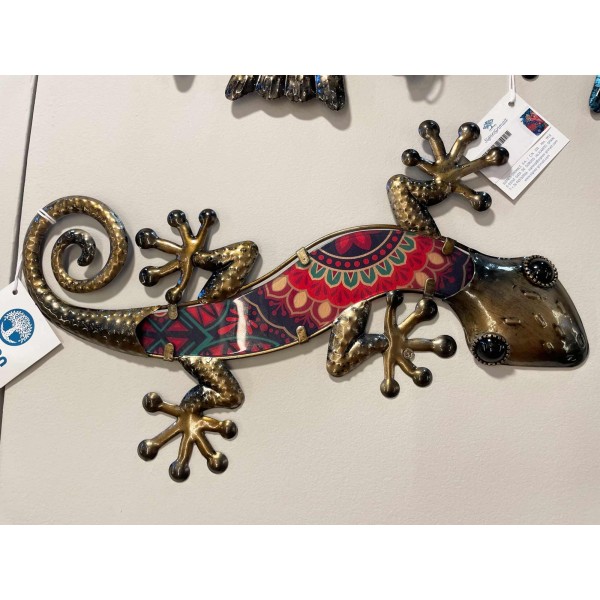 SIGNES GRIMALT Gecko Mural Bleu et Rouge, Métal et Verre, Modèle KASHMIR 2, Hauteur 37,5 cm