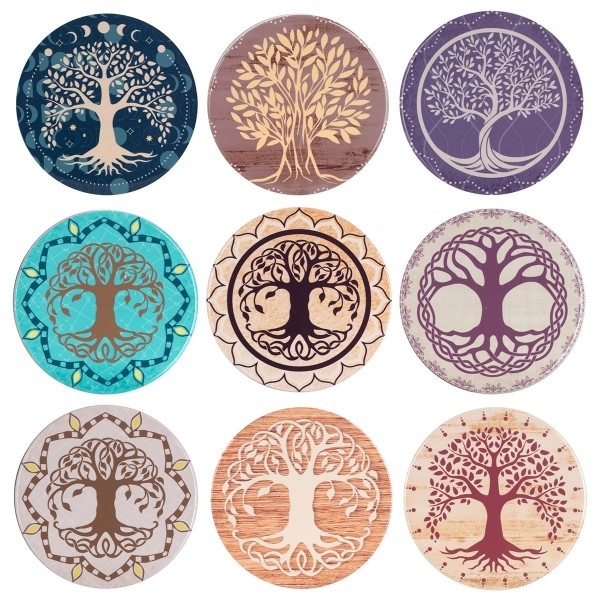 Set 6 sous-bocks Zen, Arbres de Vie stylisés, 6 modèles différents, 11 cm
